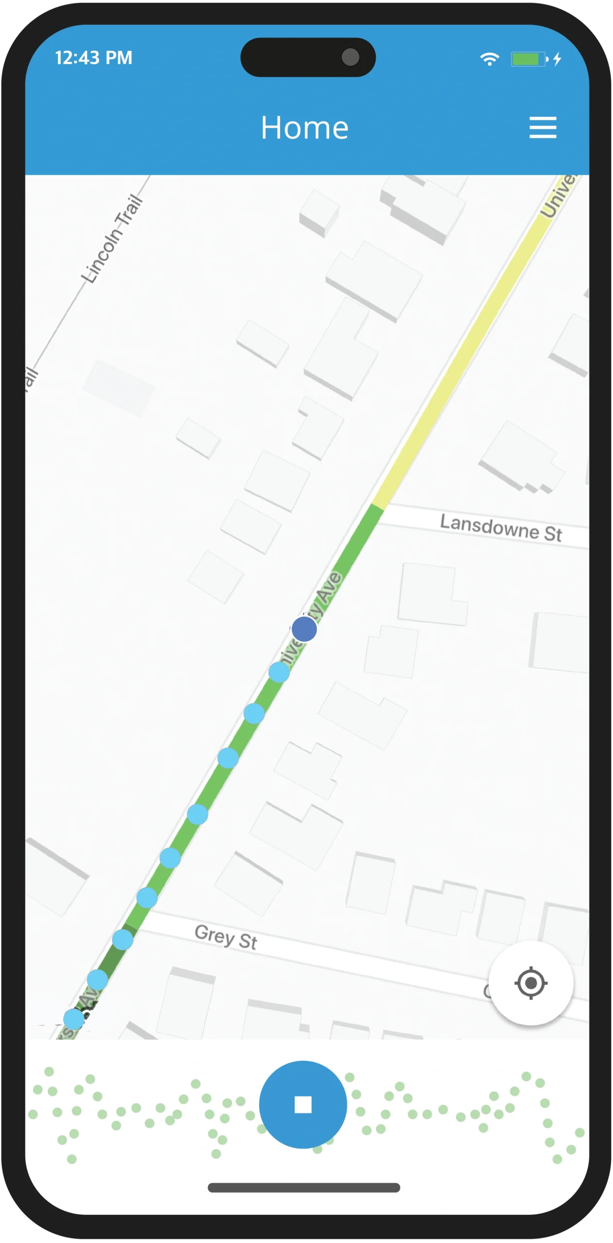 At the end of each day, simply mount your phone to the windshield of your vehicle and drive your segment. Solely using smartphone sensor data, TotalPave can compute IRI values for set intervals along the road.